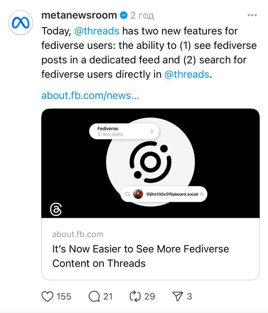 Fediverse – a big open space where social apps (like Threads, Mastodon, etc.) can “talk” to each other.